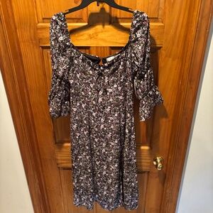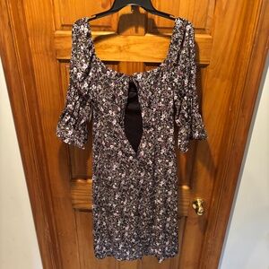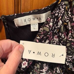 Row A Floral dress. Scoop neckline. Elbow length sleeve with flare. Back zipper closure. Women's size large. New with tags but zipper is broken.