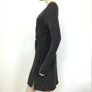 Row A Womens Cocktail long sleeve dress Sz Large L Nylon lurex Black Gold Silver