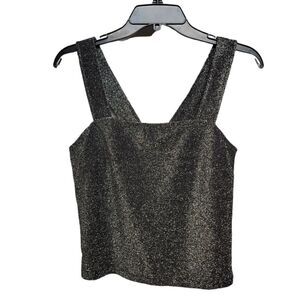 Add some sparkle and shine to your life with this fun glitter top, styled with a saucy square neck and wide strap