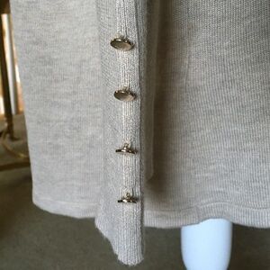 Row size XXL viscose long tan cardigan sweater with decorative buttons on the sleeves.