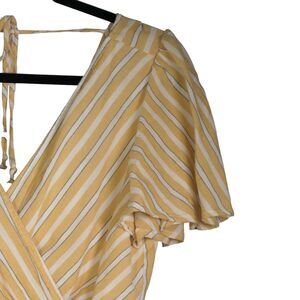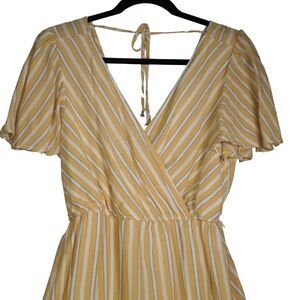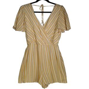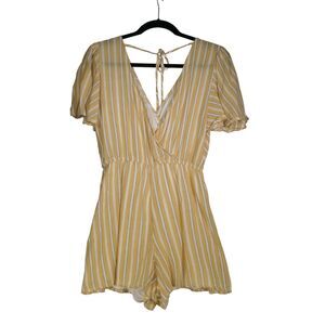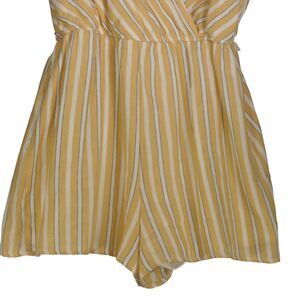 Rowa Yellow Striped Romper Womens Size M Deep Plunge V Neck Lined Cotton Blend