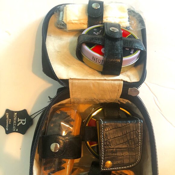 Rowallan Shoe Polish Kit Genuine Leather Case Neutral Black Polish Brush