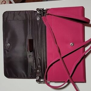 EUC BUT possibly brand new. ROWALLAN of Scotland "SEDONA" Raspberry nylon crossbody convertible clutch purse featuring a SLIM design with interior and exterior storage. Measures ~10" wide by 6" high x 1.25" thick (expandable); Opened - 10" wide by 11.5" high by 1" thick (expandable).
