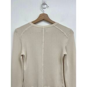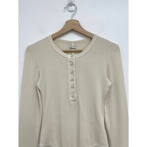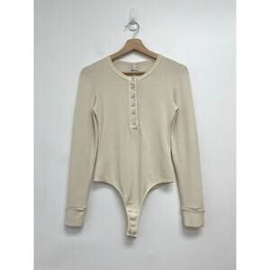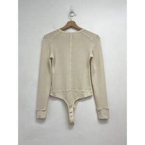 Rowan Henley Cotton Thermal Fitted Long Sleeve Thong Bodysuit Vintage White - S