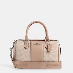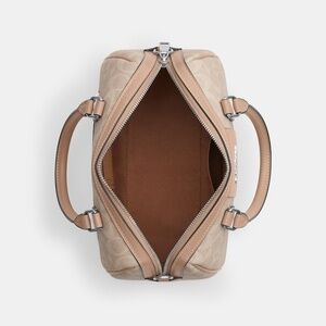 Signature coated canvas and smooth leather Inside zip and multifunction pockets Zip closure fabric lining Handles with 4 1/4 drop Outside zip pocket Detachable strap with 23 drop for shoulder or crossbody wear 10 (L) x 6 1/2 (H) x 5 1/2 (W) Style No. CW376