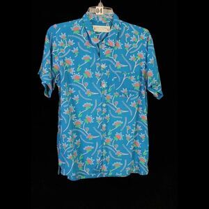 Rowdy Gentleman Hawaiian Shirt Short Sleeve Button Down Blue Floral Men's Size S