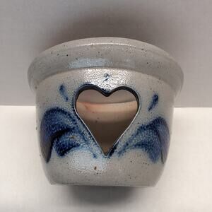 Rowe Pottery Works Heart Cutout Candle Crock Holder Votive Salt Glaze Folk Art