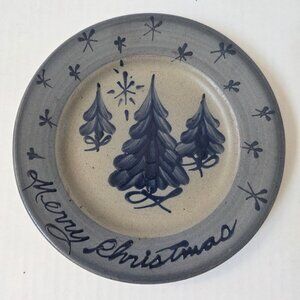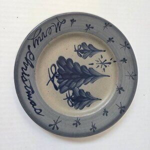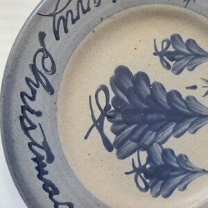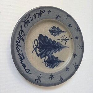 Rowe Pottery Works Merry Christmas Tree Holiday Cookies Plate 7.5" Salt Glazed