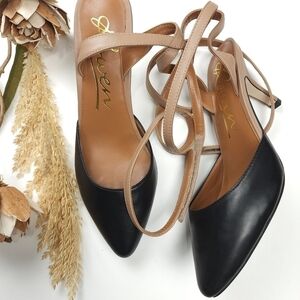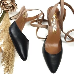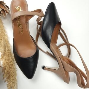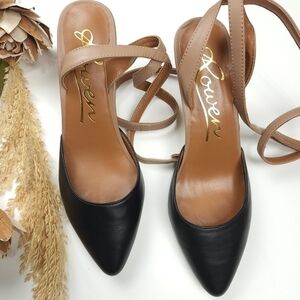 Rowen Black Tan Ankle Strap Heels Sz 8m