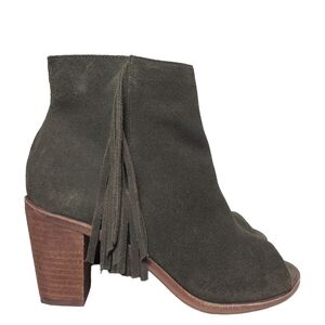 Rowen Olive Green Suede Fringe Chunky Heel Bootie Sz 6