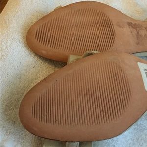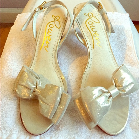 Gold bow sandals. Bow is iridescent material. Sling backs. Heels 1.5-2 inches. Super cute for dressing up or down. This was a posh purchase but they don't fit me. Very good variation to the Chloe Bow heel sandals. Never worn. No box no bag.