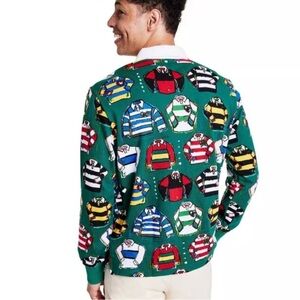 • Green hue with allover print of tiny rugby shirts
