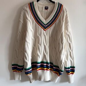 Rowing Blazers x Target Croquet Stripe Cable Knit Sweater XL V-Neck Rainbow Soft