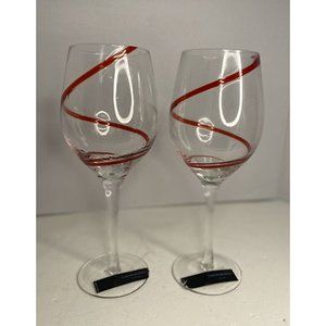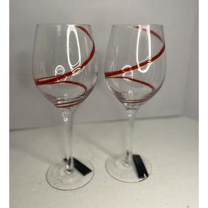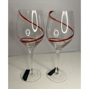 Rowley Red Swirl Stemmed Wine Glasses Lg Bordeaux Holiday Christmas
