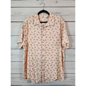 Rowm Men's Beige Pink Sun Printed Cotton Short Sleeve Button Down Shirt Size 2XB
