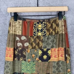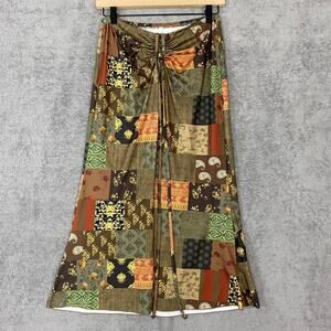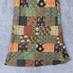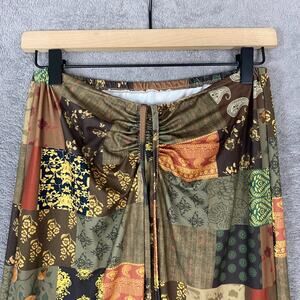 Rowme Maxi Skirt Womens M Brown Floral Patchwork Gypsy Hippie Tiered A-Line Boho