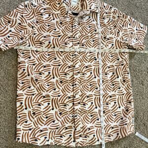 Rown Men's Casual Brown Patterned Button Down Shirt Medium