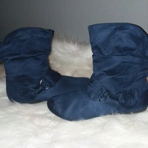 Navy blue ankle boot, now on the outside, barely worn, like new