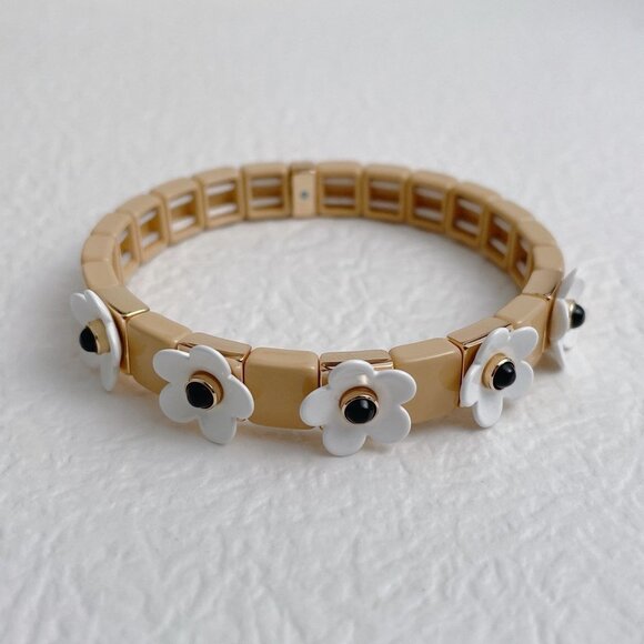 Description: gold-tone plated and enamel stretch bracelet, size medium