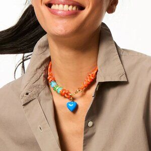 Roxanne Assoulin The Super Size Happy Cord Necklace Orange Necklace/Blue Heart