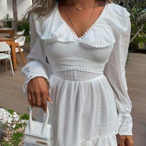 If your shopping for the perfect dress this season you're in luck! This balloon sleeve mini dress featuring pom pom & ruffle detail is perfect for brunch or a night out. Team it with strappy heels & clutch and you will be sure to turn heads!