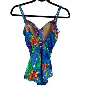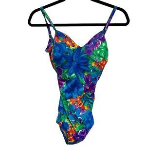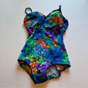 Roxanne Women's Vintage One Piece Swim Suit Blue Multi Size 12 Cup 34D