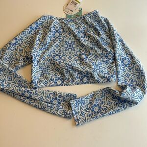 Roxy 2-pc. Fresco Tile Crop Rash Guard Set, Blue bonneT, Size 14, NWT