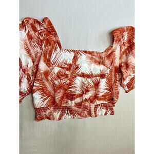 Roxy Abundant Swell Short Puff Sleeves Tropical Print Crop Top Size Large
