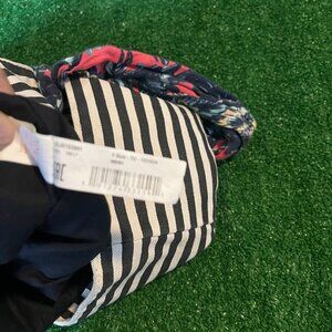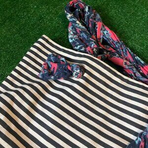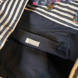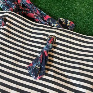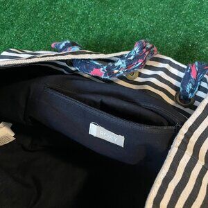 Roxy Act Together Canvas Black Stripes Floral Patterned Handles Tote Handbag Bag
