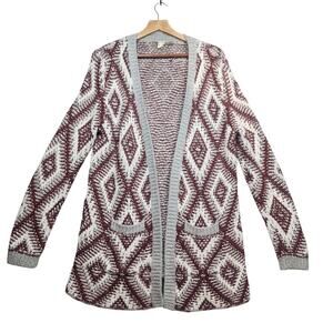 Roxy All Over Again Oversized Diamond Knit Sweater Cardigan Size Med