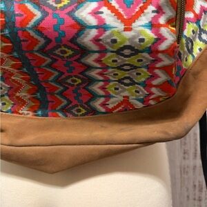 Vibrant and stylish backpack featuring a colorful pattern. Perfect for adding a pop of color to any outfit. Has a couple of marks on it, but otherwise in excellent condition. Probably just needs to be washed and those marks will come off.