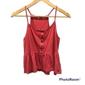 y2k Cotton Roxy Peplum Hem Spaghetti Strap Tank Top Pink Watermelon Women’s Size S Button Detail