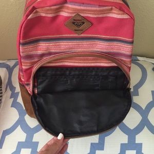-Roxy backpack, excellent condition, slightly used, perfect for back to school, two pockets, inner section for pencils/pens, large pocket for books/laptop with inner pocket, cushioned straps, non smoking home