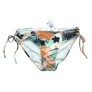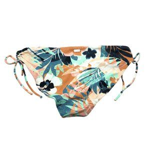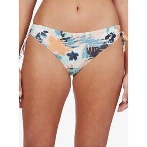 Roxy Beach Classics Bikini Bottoms Full Coverage Tie Sides Floral White Blue S