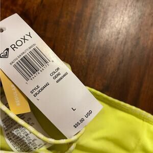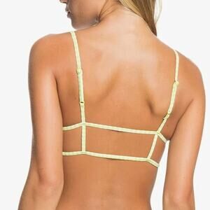 Roxy Beautiful Sun Bralette Bandeau Gingham Green White Bikini Top Swim NWT Sz L