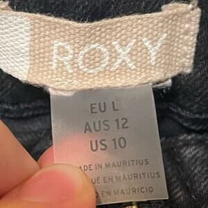 Roxy Black Denim Mini Skirt Zip Front Utility Style Size 10 Biker Chic Preppy