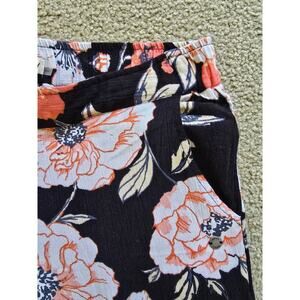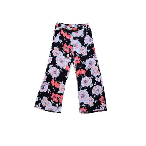 Roxy Black Floral Wide Leg Pull On Breezy Vacation Classy Breathable Pants Med.