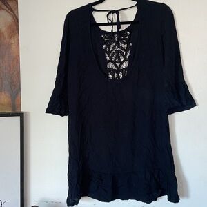 Roxy Black Goldy Soul Long Sleeve Cover-Up Dress