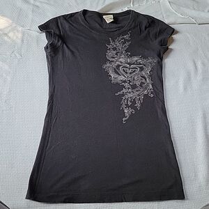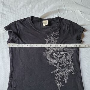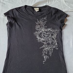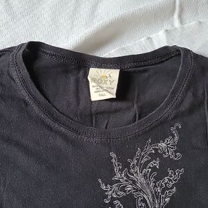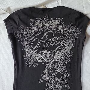 Roxy Black Gray Cap Sleeve Skinny Tee Small EUC