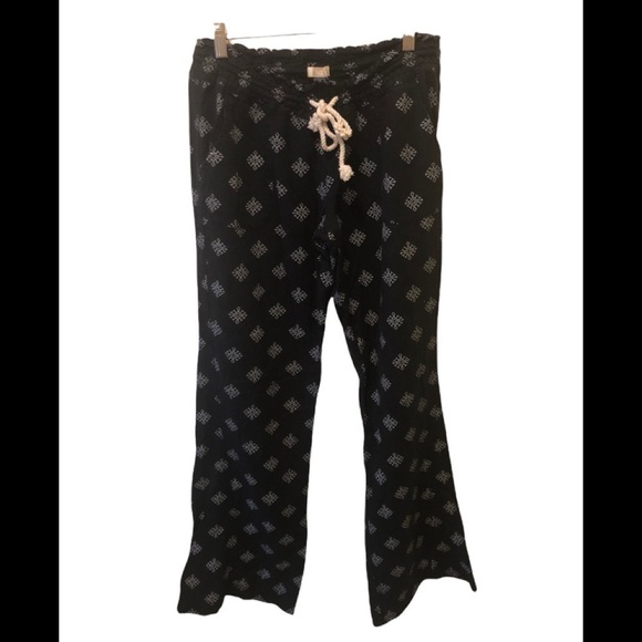 Roxy Black Printed Snowflake Lounge Pant Relaxed Flare Hem Drawstring Waist L. Hip/Back Pockets. Flax Linen Blend. Super Loungey.. perfect to run errands in too!
