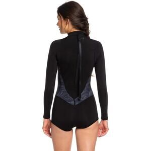 Stylish black long sleeve swimsuit. Features Roxy logo on chest and sleeve.