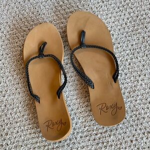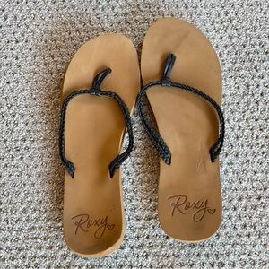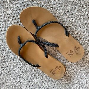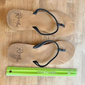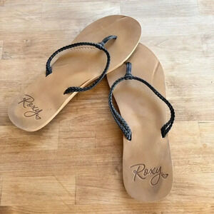 Roxy Black Tan Summer Beach Vacay Flat Flip Flop Braided Leather Women Size 11