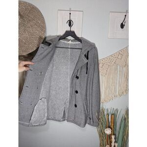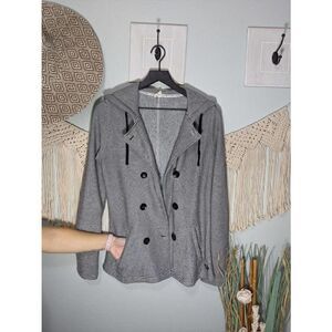 Black and White striped ROXY peacoat style jacket. Medium-weight.