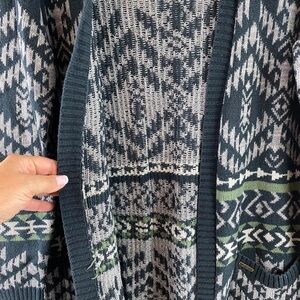 Roxy Blue Green Gray Aztec Tribal Long Line Boyfriend Open Cardigan Size M/L