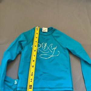 Dive into style and comfort with the Roxy Blue Rashguard, designed for optimal sun protection and a sleek fit. This vibrant blue swim top is crafted from a stretchy synthetic fabric, ensuring ease of movement and durability in the water. Perfect for any aquatic adventure, its eye-catching color guarantees you'll stand out at the beach or pool.