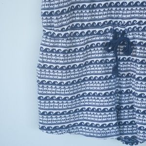 Roxy Size Medium Blue Wave Print Open Side Cotton Romper. Measures flat approx. 32 inches long with a 2 inc inseam. 100% cotton. Open sides on the top, perfect for a beach coverup. Preowned condition, light wash wear. See photos.