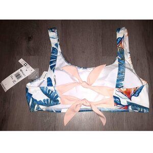 Women's Roxy blue and orange tropical floral print bikini top. Size LARGE. Lightly padded cups (removable). Brand new with tags, never worn or tried on.