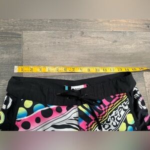 Womens Stretch Roxy Board Shorts Size 3-Black w Rainbow Graffiti Graphic.