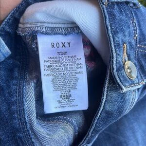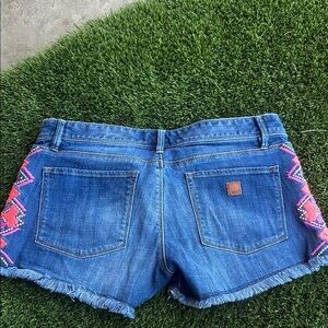 Roxy Boho Aztec Blue Denim Shorts with Pink Embroidery Size 29