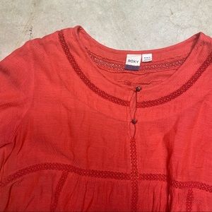 Roxy Boho Pink Flowy Top Size Medium short-sleeve shirt beach travel